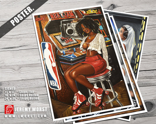 JEREMY WORST NBA Jam Retro Arcade painting Artwork poster roller skates quad barcade wall art decor sexy cabnit stool hentai anime