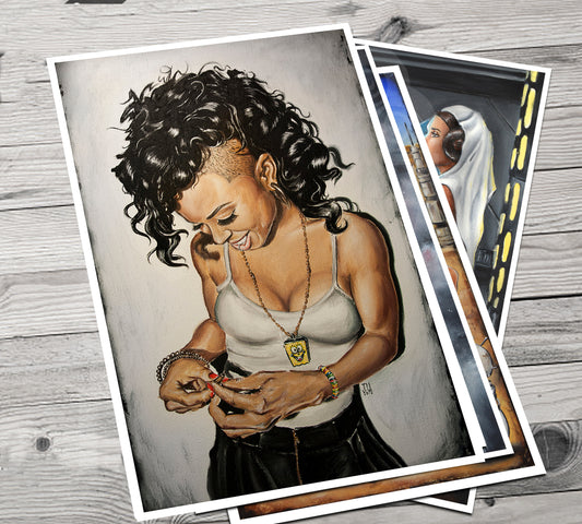 JEREMY WORST " RiRi " Sketch Artwork Signed Fine Art Print Great gift for Her Rihanna navy
