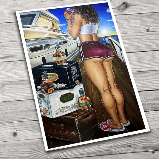 JEREMY WORST Call Me Sexy Canvas Wall Whiskey Decanter Bottle Barrel Piano Artwork Print woman NSFW Pinup gift Glass Sign