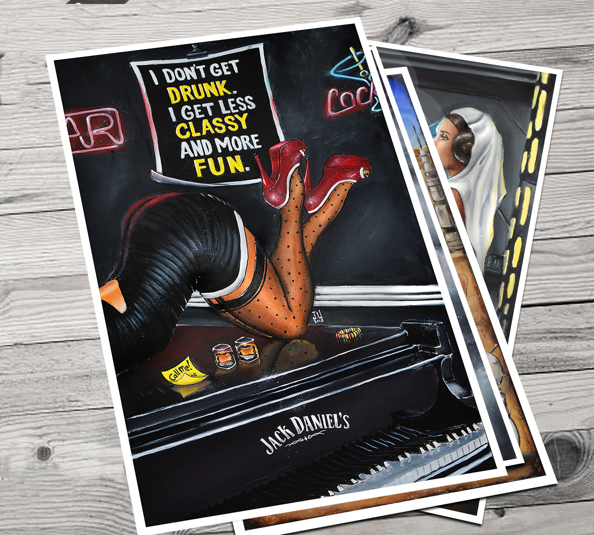 JEREMY WORST Call Me Sexy Canvas Wall Whiskey Decanter Bottle Barrel Piano Artwork Print woman NSFW Pinup gift Glass Sign
